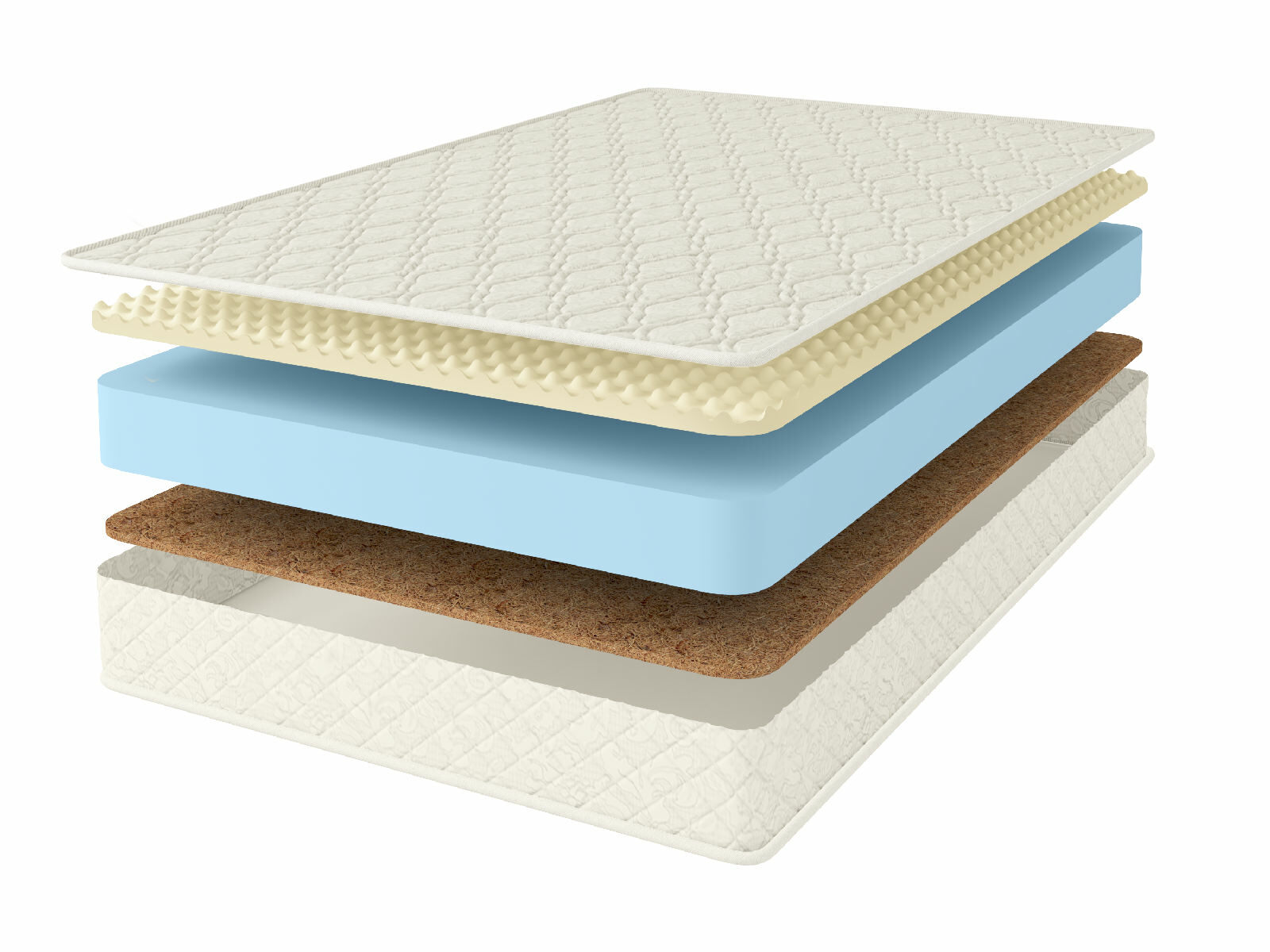 Чехол матраса из хлопкового жаккарда, который обладает высокой износостойкостью, простеган на Холлконе и имеет очень длительный срок службы. Ткань чехла может немного отличаться по рисунку, а также по оттенку цвета, это не влияет на ее свойства и качество.