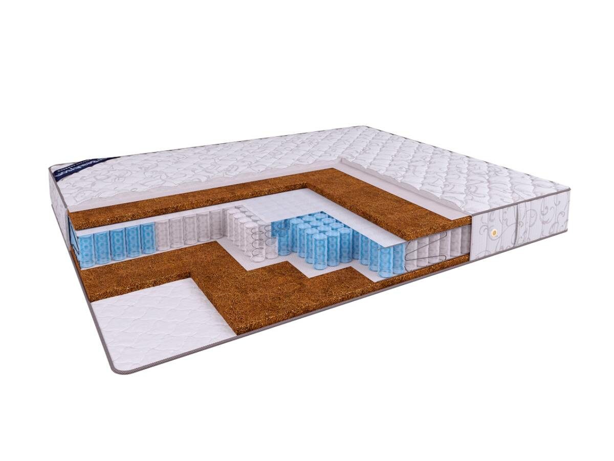 Матрас с разной жёсткостью сторон Hit Hard TFK+ выполнен на основе независимого пружинного блока плотностью 600 пружин на спальное место и натурального кокосового волокна. Мультизональный пружинный блок имеет 5 различных зон жёсткости, соответствующих различным частям тела, обеспечивая тем самым равномерное распределение веса спящего и нахождение позвоночника в естественном положении. Натуральный наполнитель матраса - плита прессованного кокосового волокна - обеспечивает непревзойдённую ортопедическую поддержку. Кокосовое волокно обладает превосходной воздухопроницаемостью, обеспечивая естественную вентиляцию спального места. Благодаря прочному пружинному блоку, усиленному боковыми пружинами, и жёсткому наполнителю матрас способен выдерживать значительные нагрузки (до 140 кг на одно спальное место).