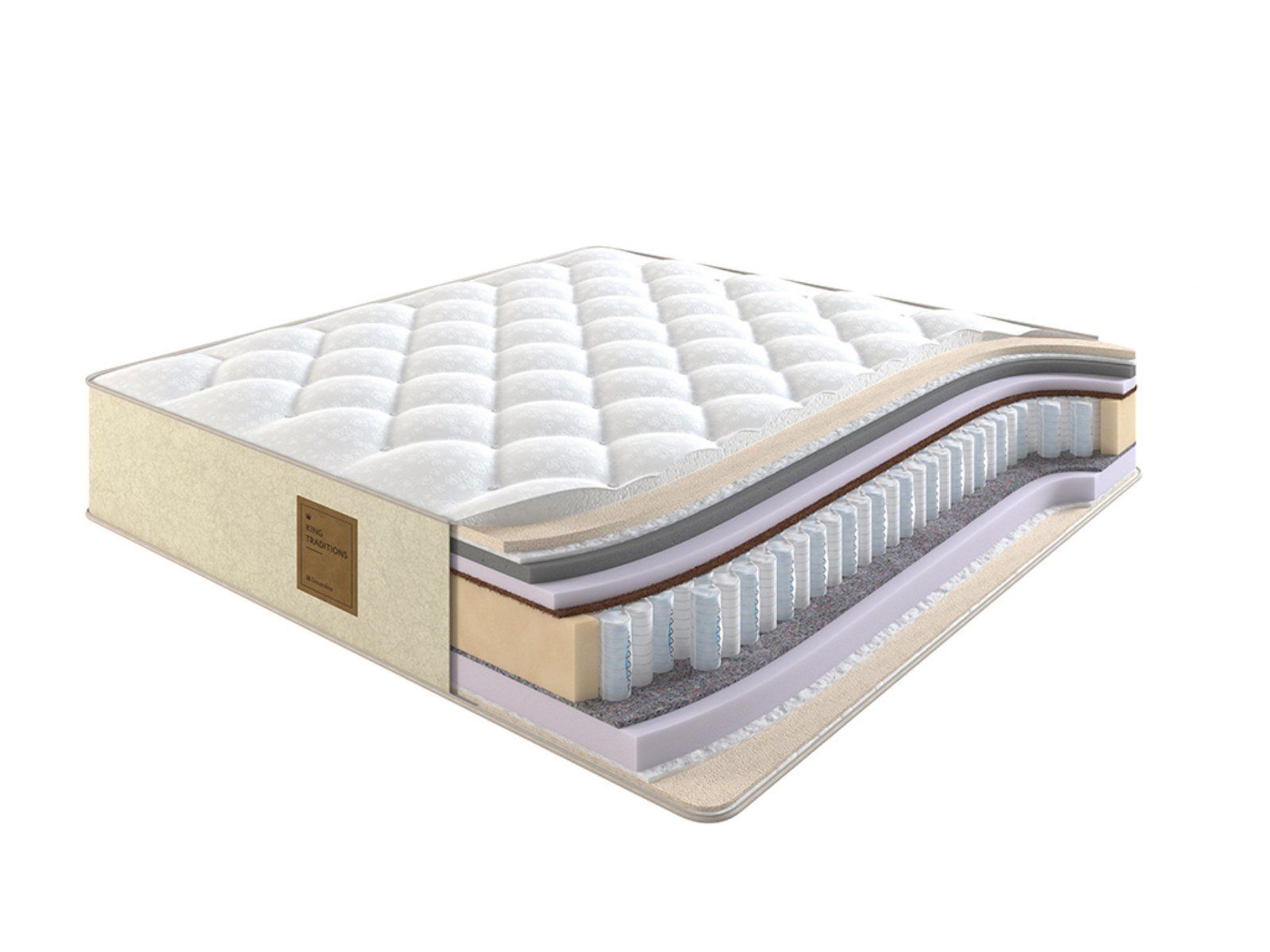 Коллекция King Traditions отличается невероятным качеством и роскошными материалами. В составе используются как современные, так и традиционные наполнители: натуральный латекс, конский волос, шерсть, холкон и эластичный материал.