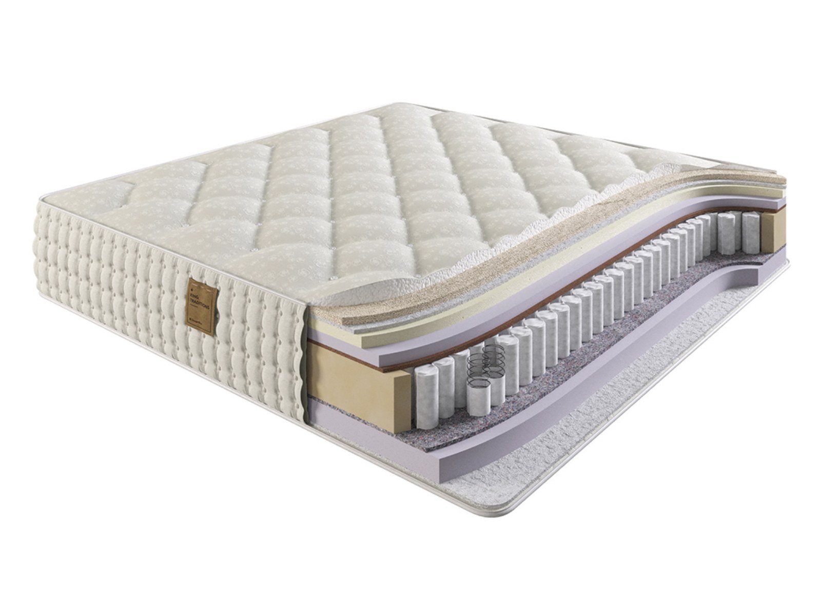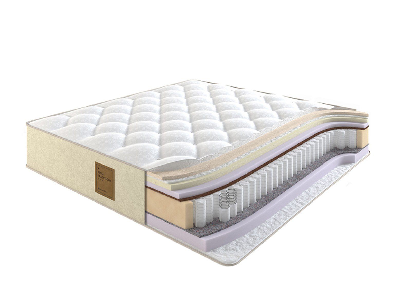 Коллекция King Traditions отличается невероятным качеством и роскошными материалами. В составе используются как современные, так и традиционные наполнители: натуральный латекс, конский волос, шерсть, холкон и эластичный материал.