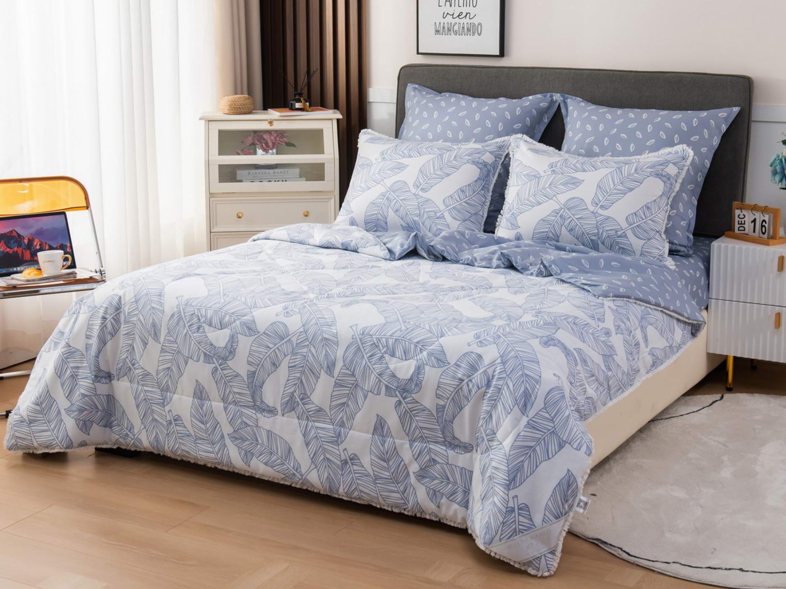 В комплекты комфортеров с одеялом Бернадетт входят наволочки, простыня и легкое всесезонное одеяло. Оцените это современное и очень удобное решение, которое идеально подходит тем, кто не любит возиться с пододеяльниками.