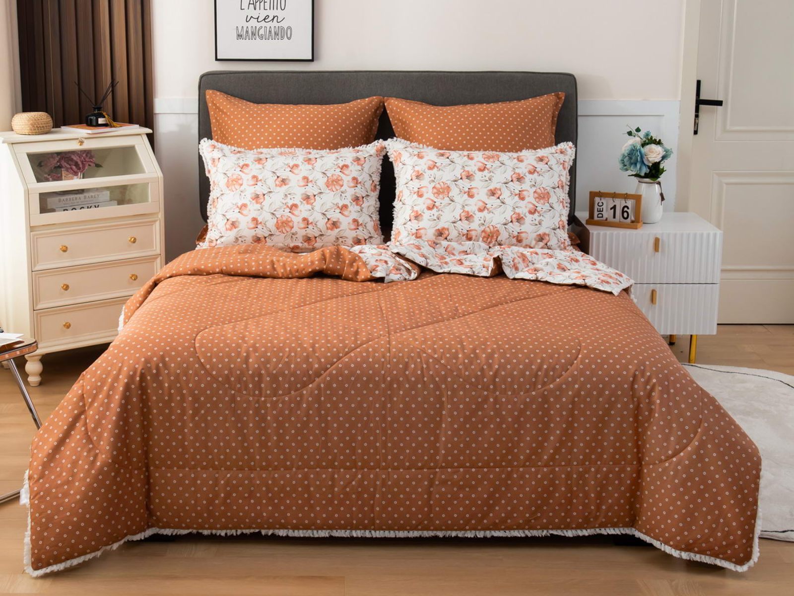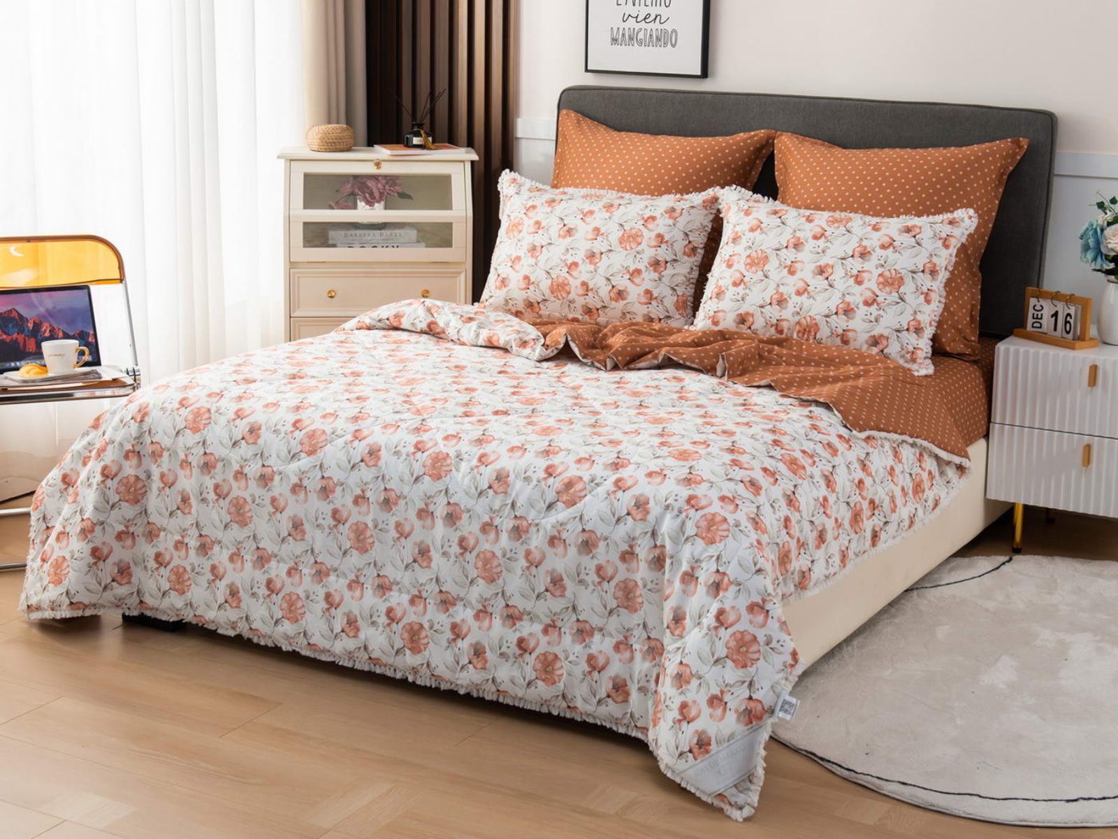 В комплекты комфортеров с одеялом Бернадетт входят наволочки, простыня и легкое всесезонное одеяло. Оцените это современное и очень удобное решение, которое идеально подходит тем, кто не любит возиться с пододеяльниками.