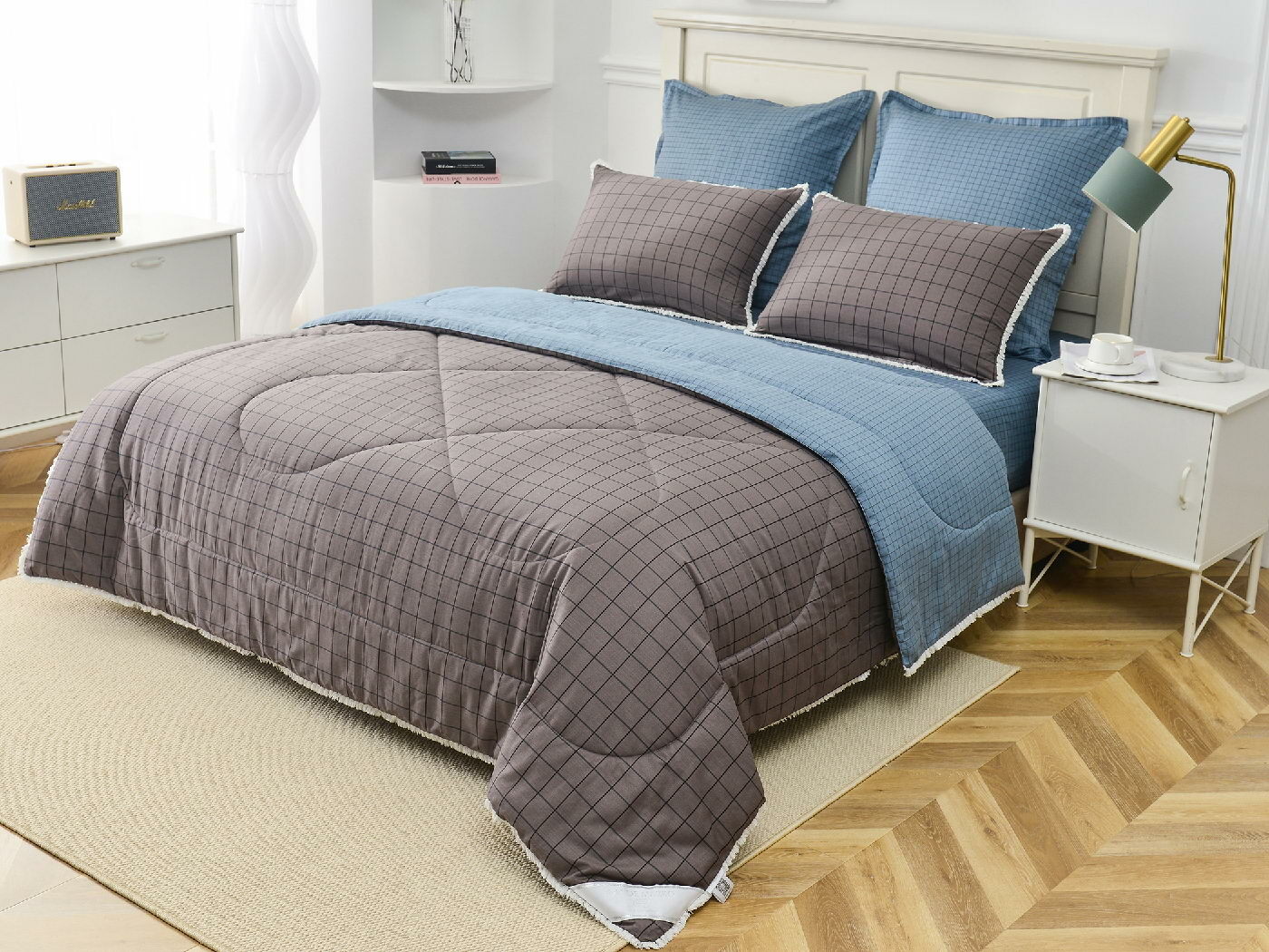 В комплекты комфортеров с одеялом Бернадетт входят наволочки, простыня и легкое всесезонное одеяло. Оцените это современное и очень удобное решение, которое идеально подходит тем, кто не любит возиться с пододеяльниками.