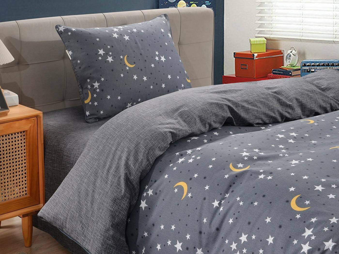 Комплекты выполнены из 100% хлопка, он гарантирует качественный сон, т.к. натуральная ткань хорошо впитывает влагу и позволяет коже дышать. Натуральные материалы не вызывают аллергии. Огромная палитра оттенков и яркие дизайны комплектов понравятся детям и подросткам.