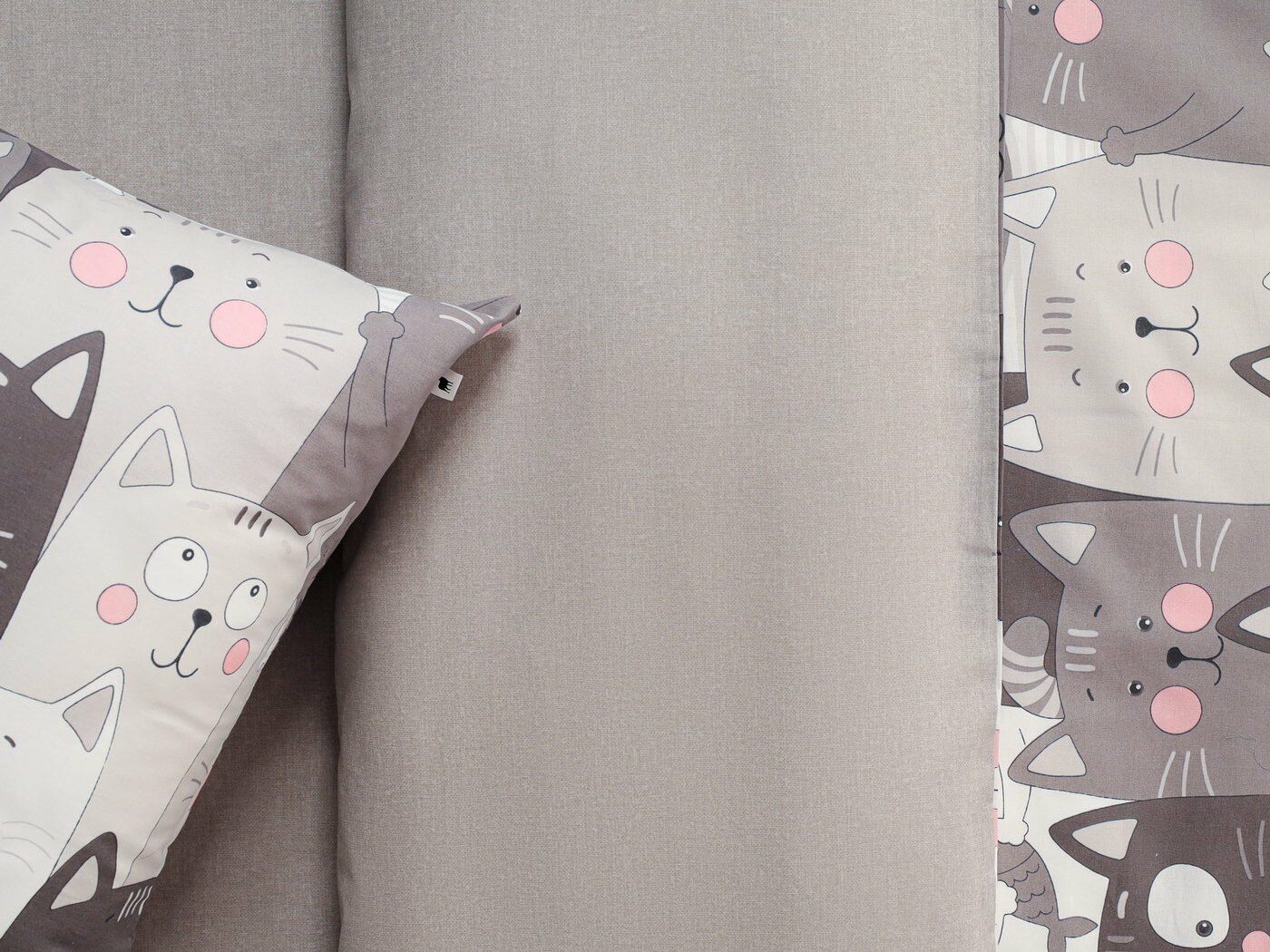 Пододеяльник –двусторонний: верх из ткани А (принтованная ткань), обратка из ткани В (однотонная рогожка), с потайной молнией.