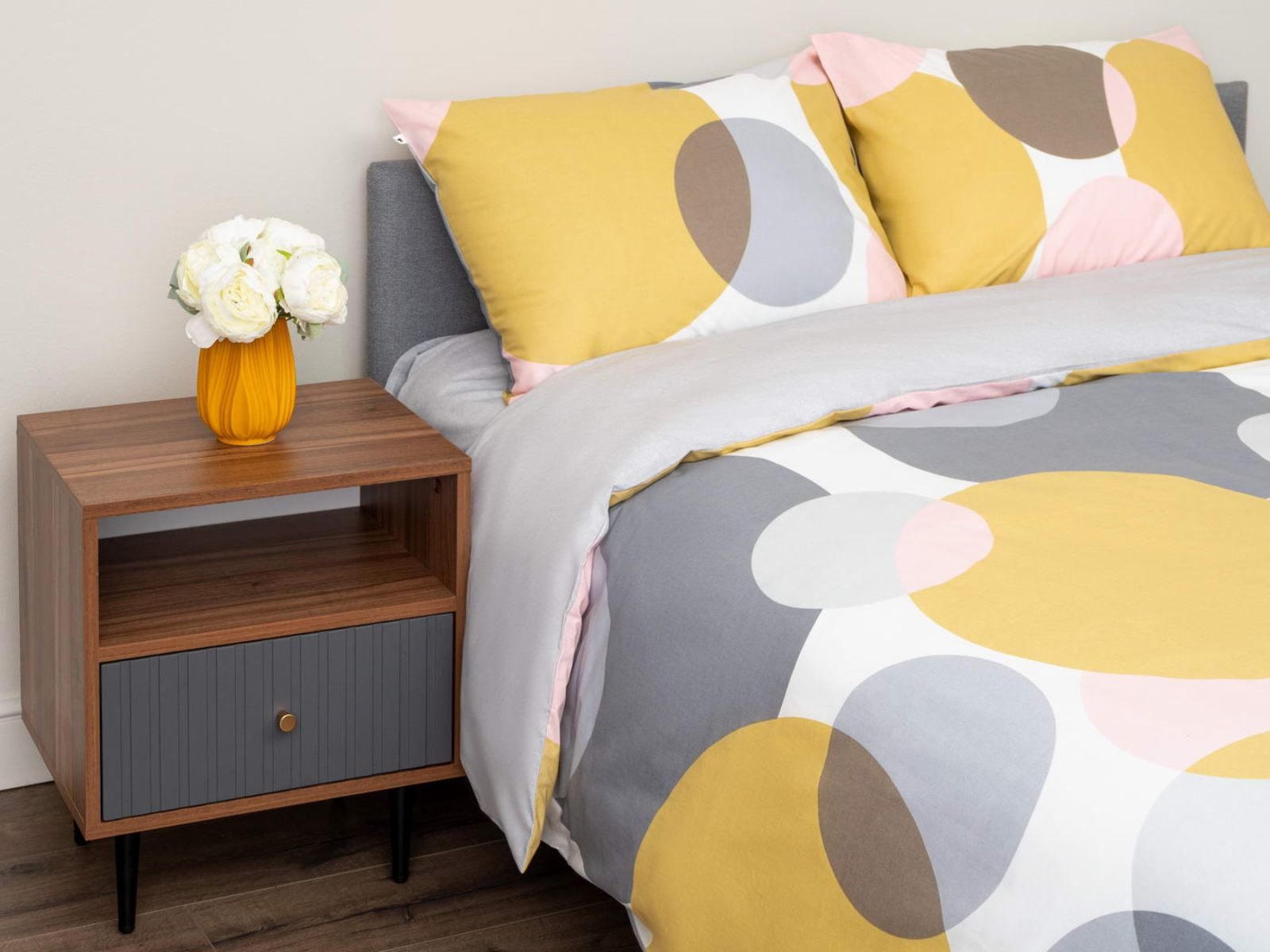 Комплект Мэгги легко стирается в обычной машине в бережном режиме и также легко гладится.