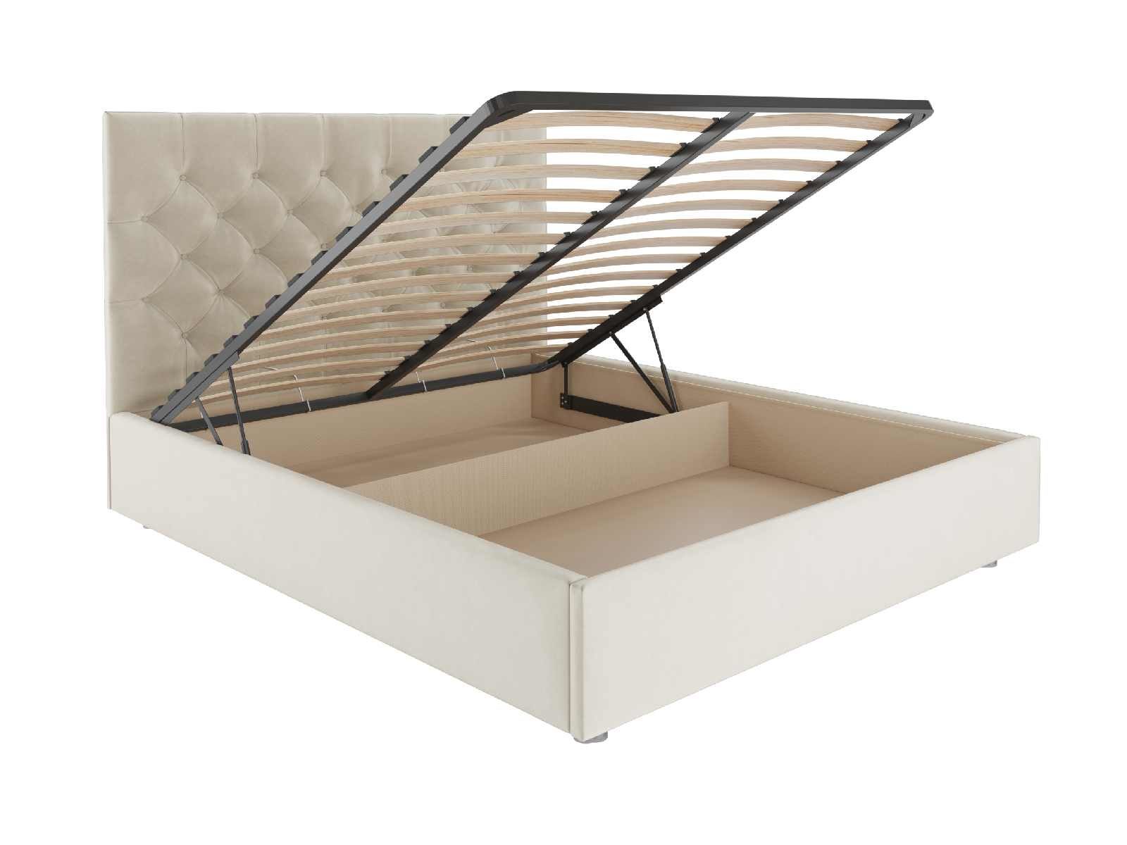 В комплектации с подъемным механизмом кровать имеет вместительный бельевой короб с двумя отделениями.