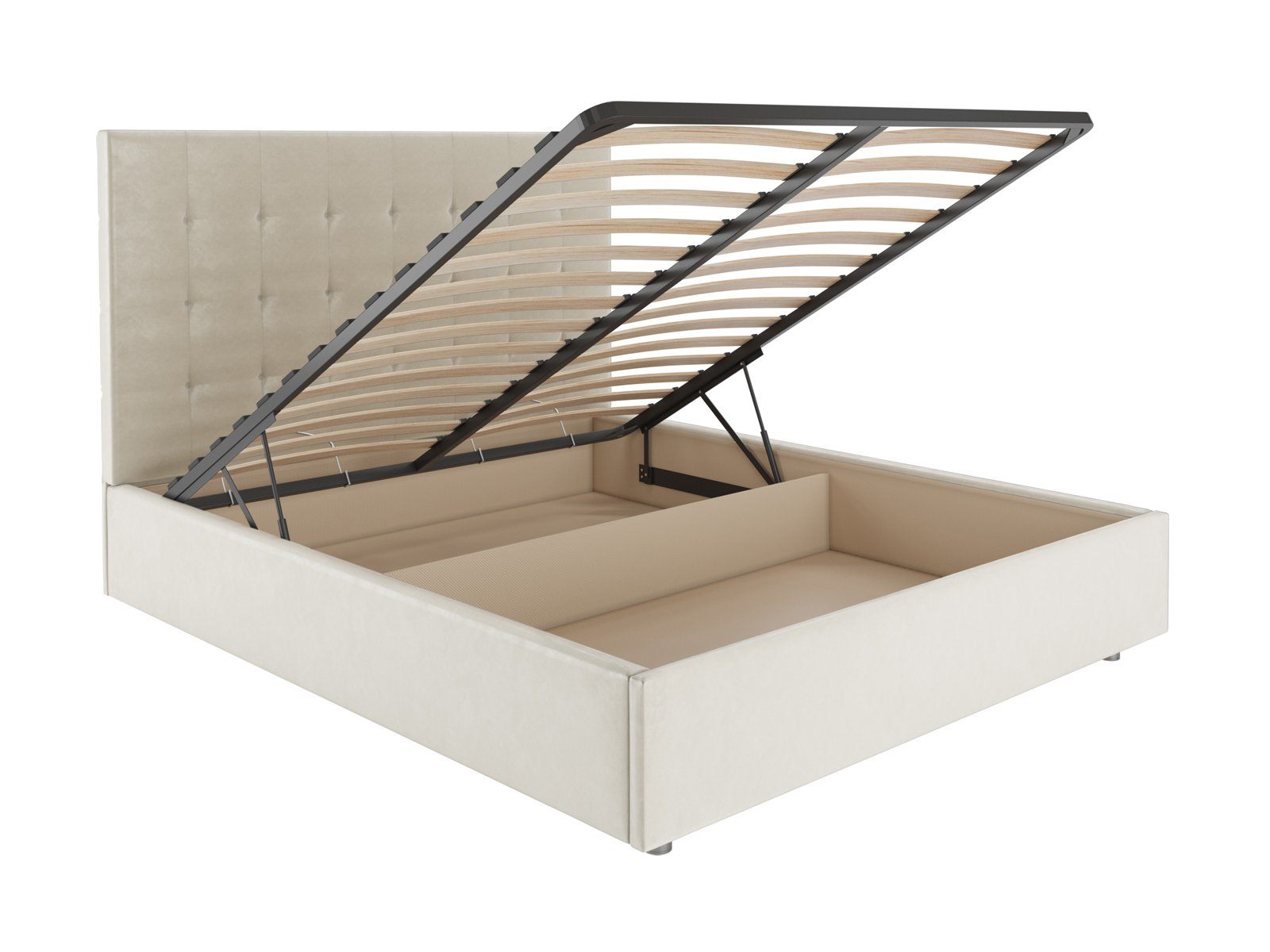 В комплектации с подъемным механизмом кровать имеет вместительный бельевой короб с двумя отделениями.