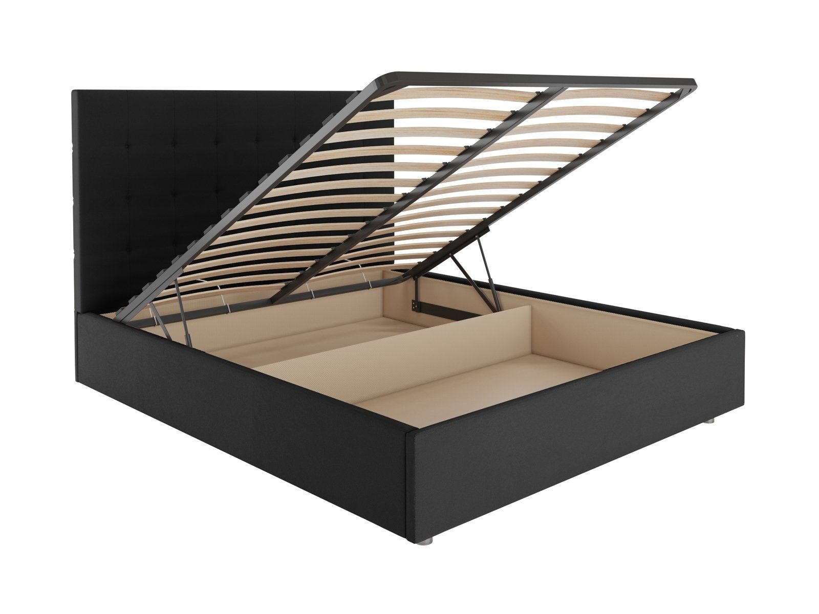 В комплектации с подъемным механизмом кровать имеет вместительный бельевой короб с двумя отделениями.