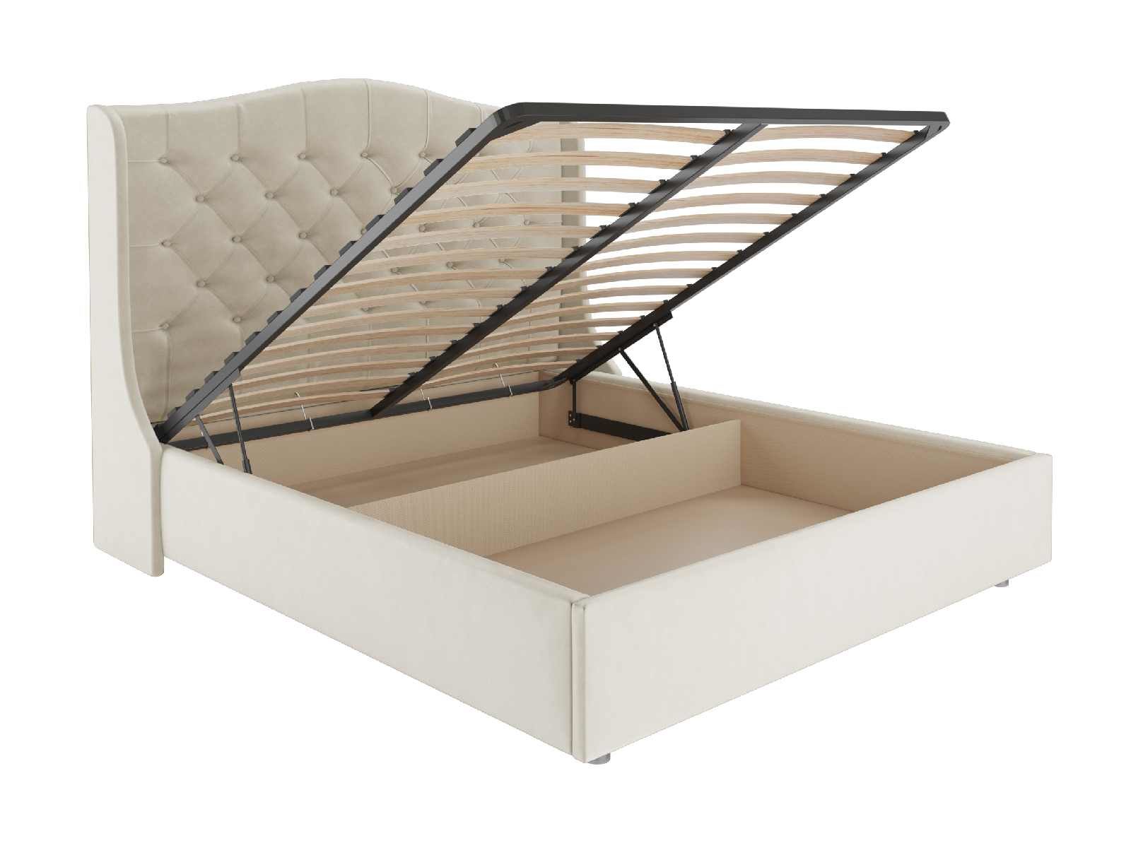 В комплектации с подъемным механизмом кровать имеет вместительный бельевой короб с двумя отделениями.
