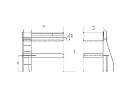 Под спальным местом расположена рабочая зона с удобным столом, на котором можно разместить ноутбук, при этом его размеры позволят хранить на нем канцелярские мелочи.