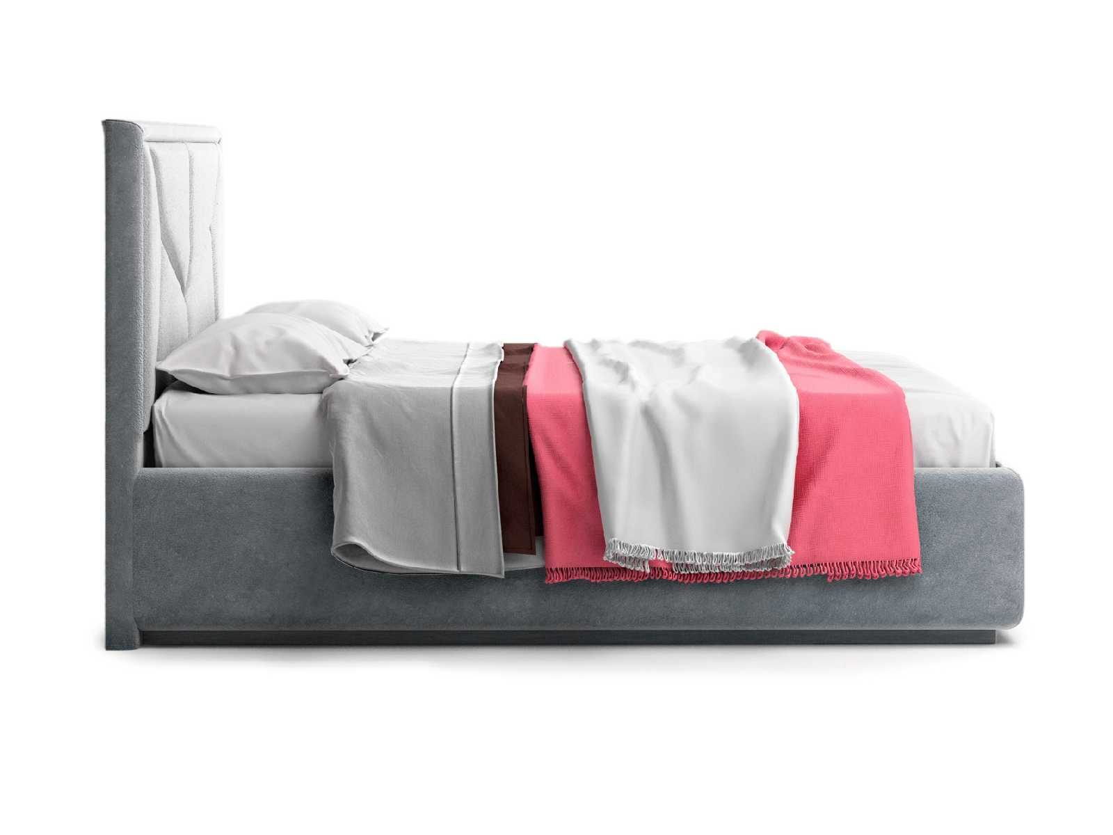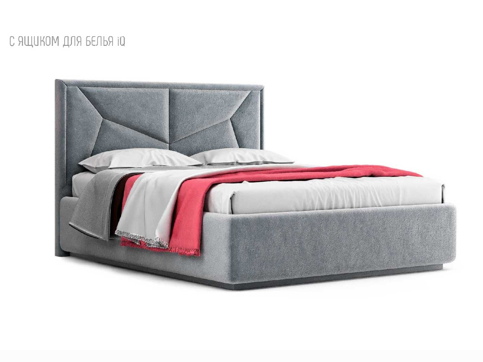 Кровать укомплектована IQ с подъемным механизмом и ящиком для белья без дна (дополнительная платная опция - дно к ящику IQ из HDF (ХДФ). Каркас кровати на цоколе, декоративный чехол на цоколе съёмный. Глубина ящика для белья - 30 см, без ограничения нагрузки на ящик.