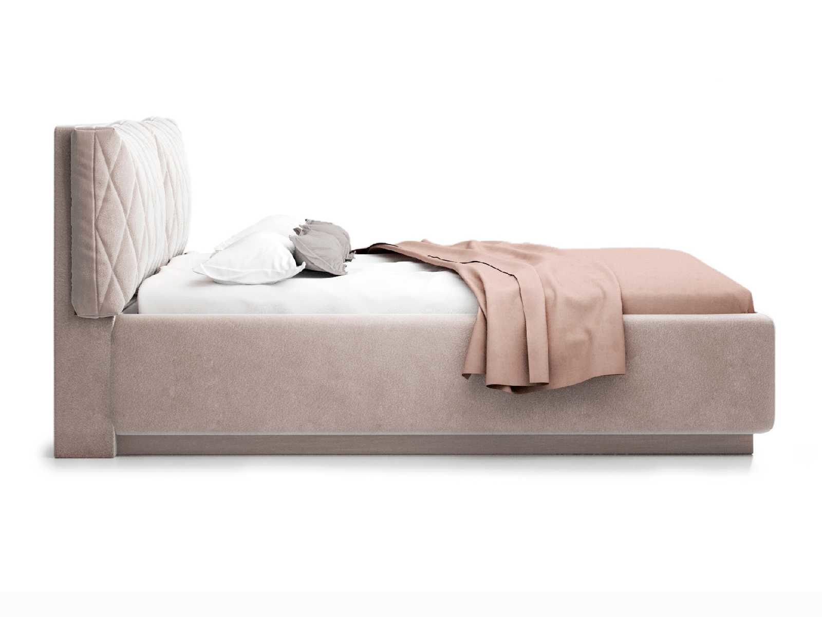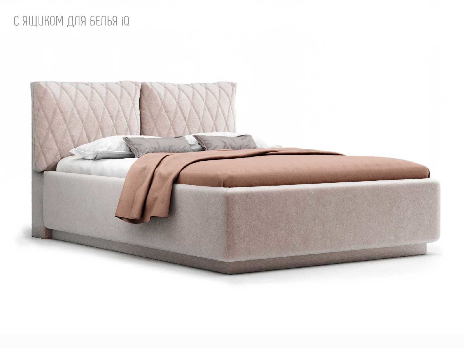 Кровать укомплектована IQ с подъемным механизмом и ящиком для белья без дна (дополнительная платная опция - дно к ящику IQ из HDF (ХДФ). Каркас кровати на цоколе, декоративный чехол на цоколе съёмный. Глубина ящика для белья - 30 см, без ограничения нагрузки на ящик.