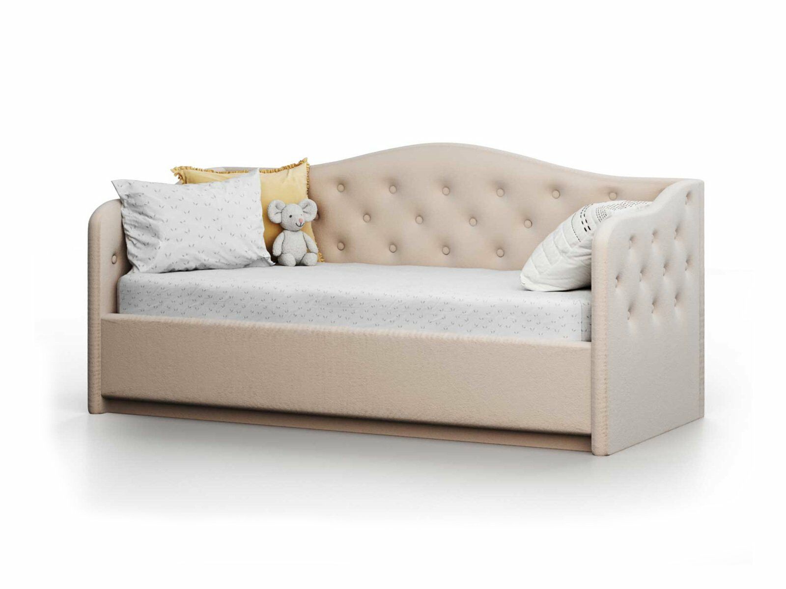 Прекрасная и воздушная кровать-софа Nuvola Elea идеально подойдет как взрослым, так и детям. Кровать выполнена в классическом стиле, изголовье-спинка и боковины кровати имеют плавные изгибы и декорированы изящными пуговицами.