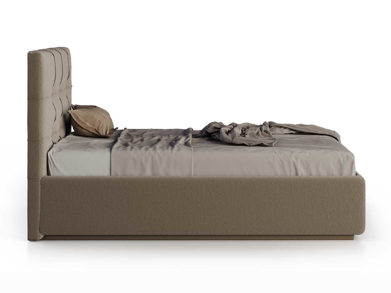Кровать укомплектована IQ с подъемным механизмом и ящиком для белья без дна (дополнительная платная опция - дно к ящику IQ из HDF (ХДФ). Каркас кровати на цоколе, декоративный чехол на цоколе съёмный. Глубина ящика для белья - 30 см, без ограничения нагрузки на ящик.