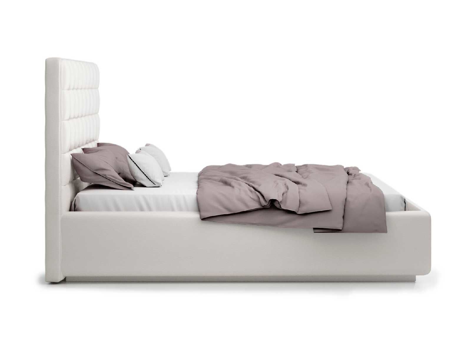 Кровать укомплектована IQ с подъемным механизмом и ящиком для белья без дна (дополнительная платная опция - дно к ящику IQ из HDF (ХДФ). Каркас кровати на цоколе, декоративный чехол на цоколе съёмный. Глубина ящика для белья - 30 см, без ограничения нагрузки на ящик.
