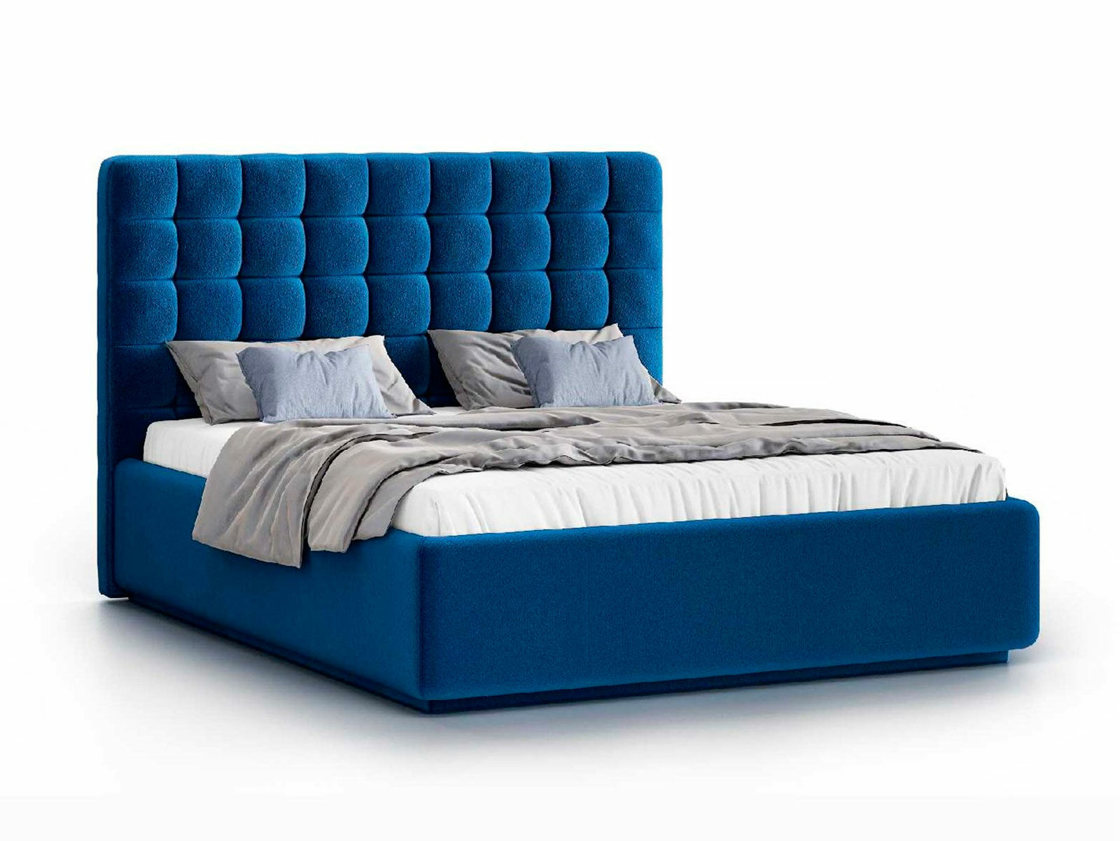 Кровать укомплектована IQ с подъемным механизмом и ящиком для белья без дна (дополнительная платная опция - дно к ящику IQ из HDF (ХДФ). Каркас кровати на цоколе, декоративный чехол на цоколе съёмный. Глубина ящика для белья - 30 см, без ограничения нагрузки на ящик.