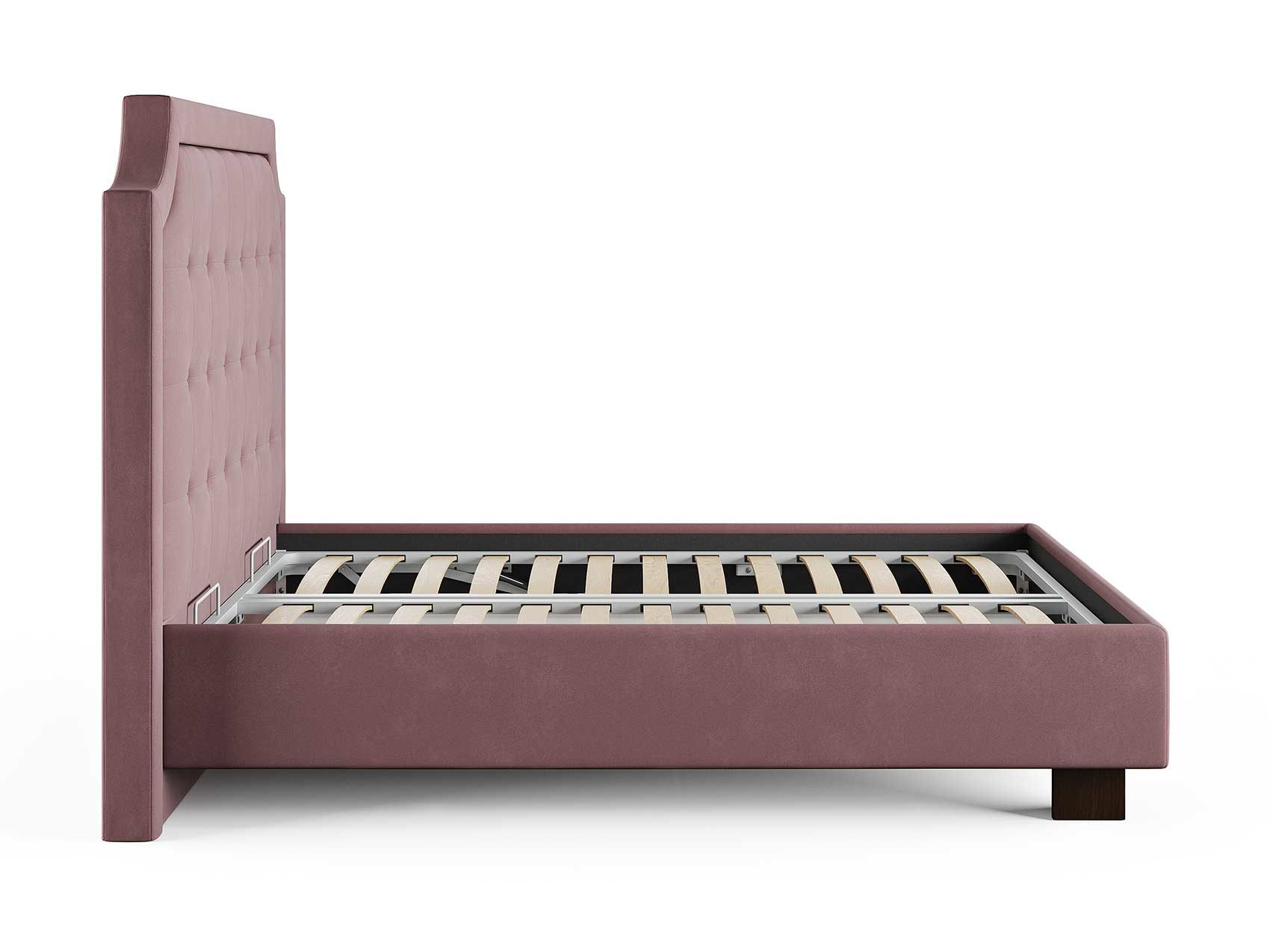Кровать прекрасно впишется в интерьер от классики до современного стиля и cтанет отличным решением для просторной светлой спальни. Высокая спинка с мягкими утяжками и массивной рамкой выглядит эффектно. Задняя часть спинки кровати выполнена в основной ткани, благодаря этому ее можно установить в центре комнаты. Увеличенная прочность кровати достигается за счет металлического каркаса по периметру. Массивные ножки, выполнены из бука цвета венге. Расстояние от пола до царг способствует легкой уборке под кроватью, в том числе роботом – пылесосом. При желании возможно установить подъемный механизм с бельевым коробом либо трансформируемое основание Aquarius.