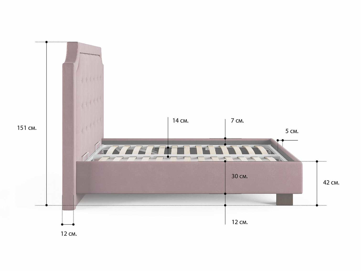 Допустимая высота матраса - 30 см.