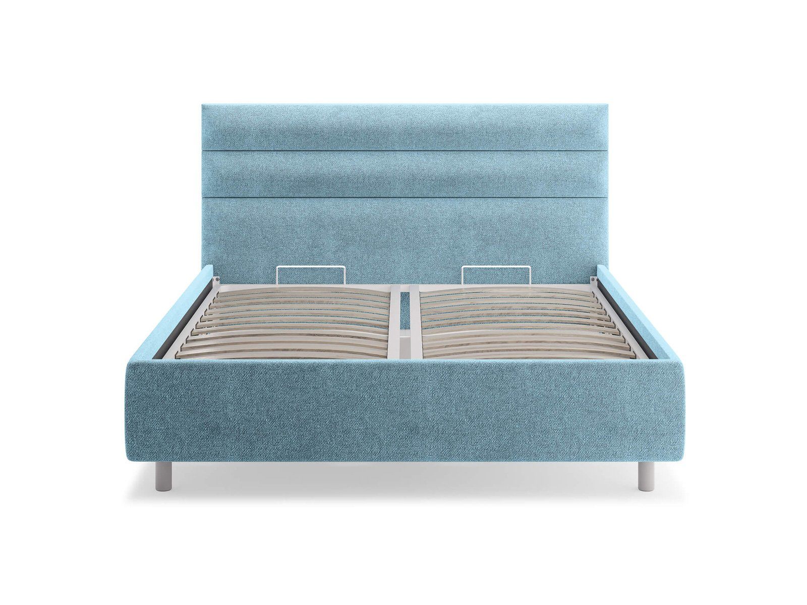 Кровать комплектуется металлическим основанием (без опор), которое имеет 13 рядов встроенных березовых ламелий на каждое спальное место, обеспечивая равномерное распределение нагрузки.