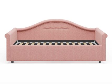 Кровать для девочки с изысканным изгибом спинки и округлыми формами подарят вашему ребенку волшебные мгновения сна. Разнообразие вариантов обивки сделает кровать неповторимой. Модель изготовлена из ДСП.