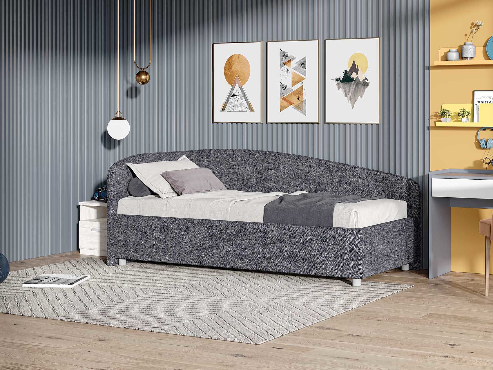 Односпальная кровать для ребенка или подростка. Модель изготовлена из ДСП. Боковую спинку кровати можно изготовить на выбор на правую или левую сторону.