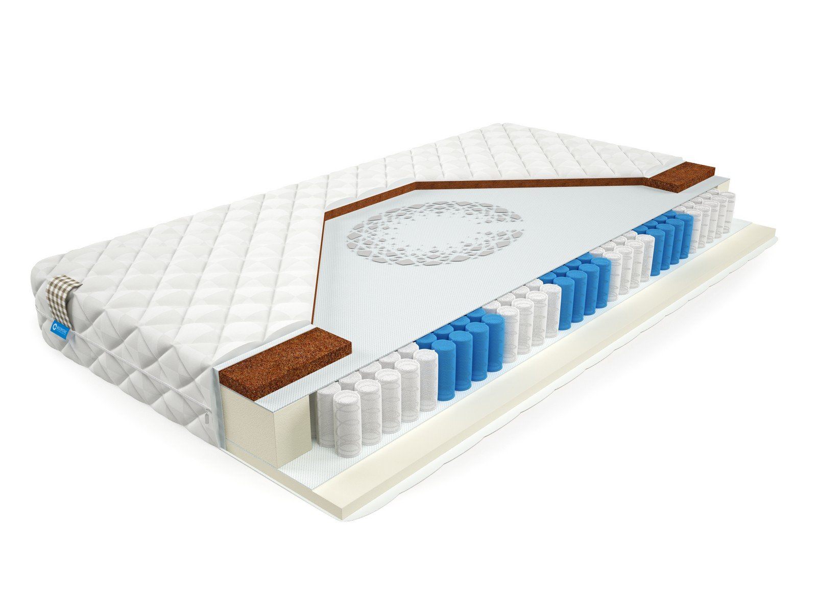 Матрас BioCrystal Robert XL с резко разной жесткостью сторон. Матрас c ортопедическим эффектом на основе семи-зонного пружинного долговечного блока независимых пружин SIlverSpringPocket 7 zone. Данный блок насчитывает 580 металлических пружин на одно спальное место, это оптимальное количество пружин для бюджетного матраса. 7 зональный пружинный блок SSP 580 значительно прочнее обычного блока независимых пружин, и имеет большее количество витков, что, в свою очередь, лучше сказывается на упругости матраса и качестве сна. Матрас насчитывает семь зон жесткости и правильно повторяет изгибы позвоночника во время сна или отдыха. Жесткость матраса придают 3 сантиметра латексированного кокосового волокна c 1 стороны, это сторона матраса будет немного жестче. А с другой стороны матраса 3 см пенополиуретана. ППУ – это современный материал, очень часто его называют искусственный латекс, так как по своим характеристикам, он анатомичный и не жесткий материал. Пенополиуретан усиливает анатомический эффект матраса. Это оптимальный выбор для тех, кто до конца не определился с жесткостью матраса.