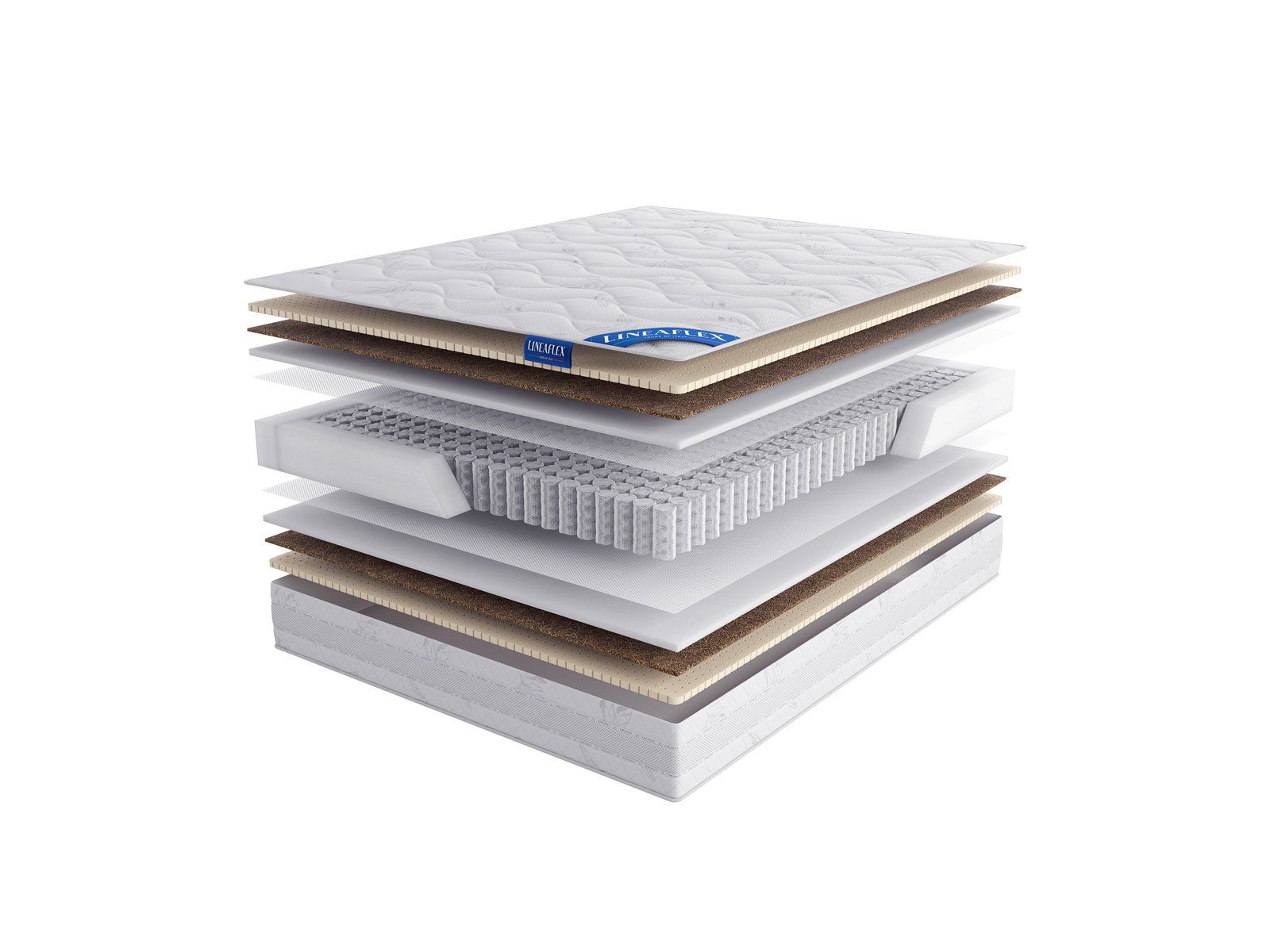 Вторым слоем проложено полотно кокоса – жёсткий тонкий настил, полученный из растительных волокон кокосовой пальмы. Материал необходим для усиления плотности спального места, а также высококлассной ортопедической поддержки, которую способна обеспечить только койра кокоса. Особенность наполнителя – природный антибактериальный эффект, который способствует сохранению чистоты и гигиеничности матраса.