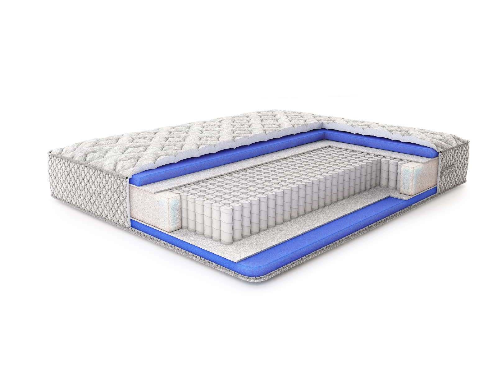 Для обивки матраса реализован жаккард с тремя слоями для стёжки: холлкон 300 гр., ППУ 1 см и спанбонд. Прострочка методом джампинга позволяет добиться более выраженного и красивого рельефа сторон. Бурлет оформляется при помощи практичного серого жаккарда.
