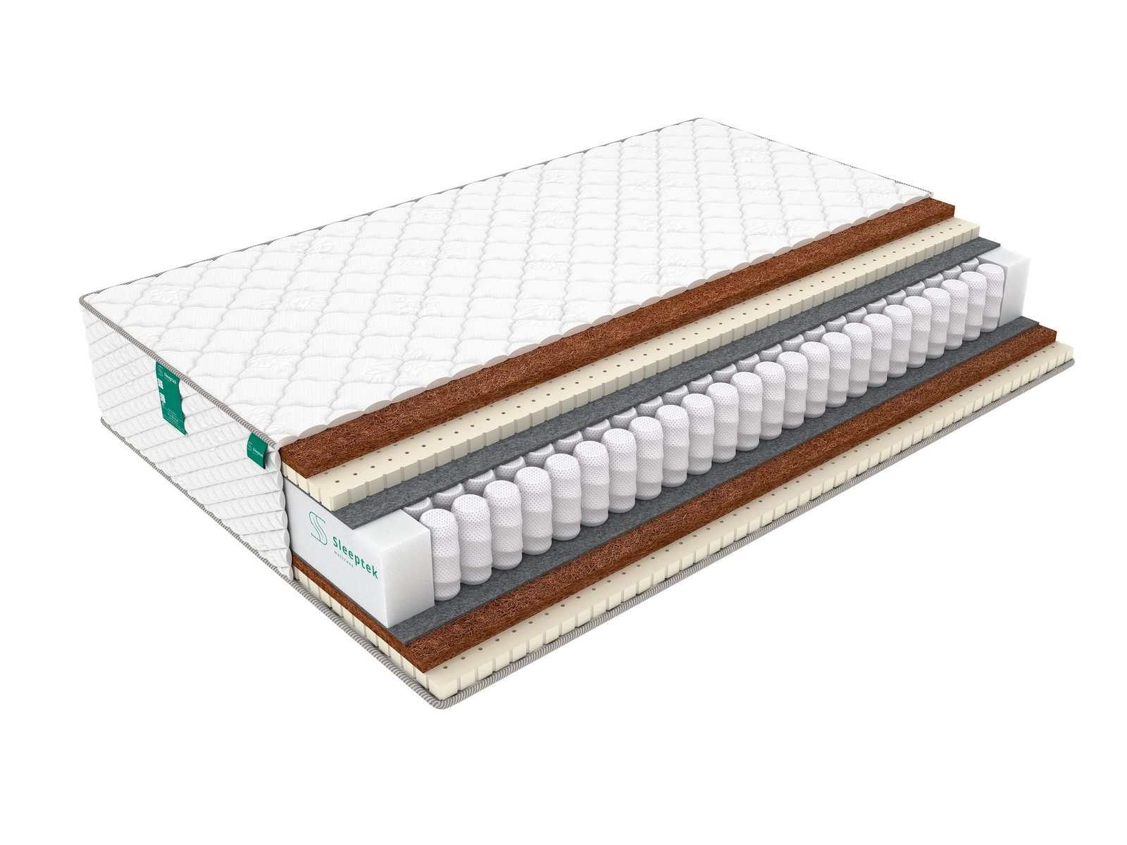 Блок пружин отделен от наполнителей слоями термовойлока,он защищает наполнители от контакта с пружинами и продлевает срок службы матраса.