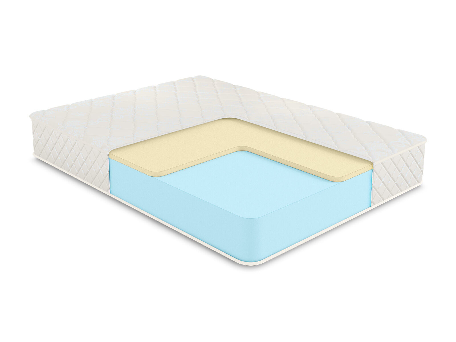 Матрас состоит из двух слоёв наполнителей: внушительного и большого блока пены Ecofoam и прослойки мягкого материала Мемори. Если пена обладает выраженными ортопедическими качествами, то Мемори – это анатомичный материал. В чём разница этих свойств? Ортопедические наполнители удерживают естественное и правильное физиологическое позвоночника, сохраняя здоровье осанки. Анатомические повторяют формы тела, способствуя быстрому расслаблению и комфорту человека.