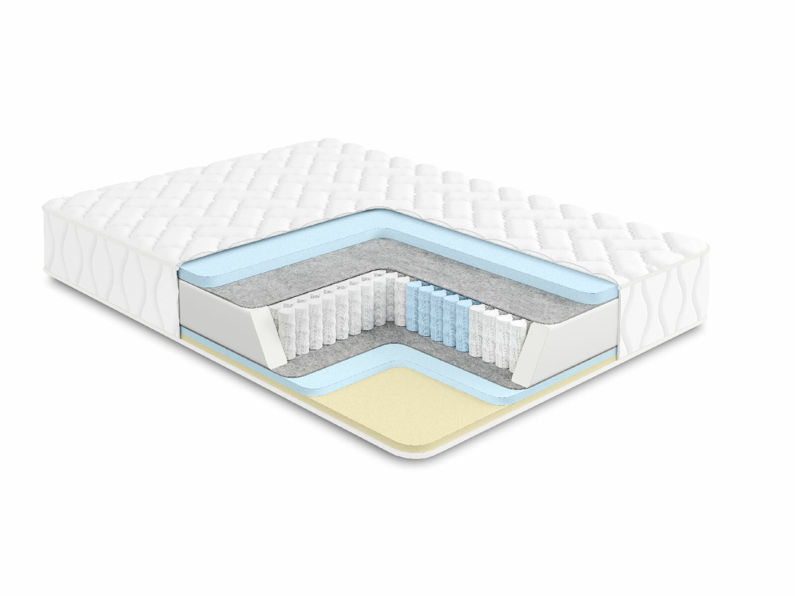 Пружинный матрас в основе которого многозональный независимый пружинный блок 1000 пружин на спальное место обеспечивает ортопедическую поддержку и комфорт во время сна. Независимые пружины подстраиваются под формы человека, потому что каждая пружина находится в отдельном кармашке и обеспечивает равномерное распределение веса.