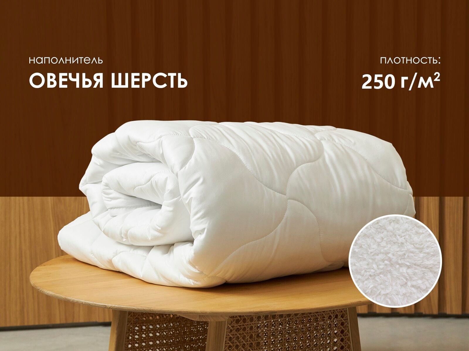 Основным наполнителем одеяла является овечья шерсть, известная своими великолепными теплоизоляционными свойствами. С древних времен люди использовали натуральную шерсть для обеспечения тепла и уюта, и это знание не потеряло своей актуальности. Греющие свойства данной ткани невозможно переоценить, особенно в условиях переменчивого климата.