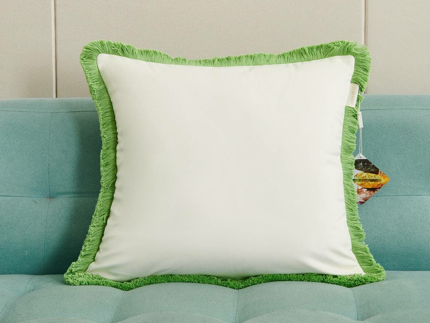 Особенность : с бахромой, потайная молния под цвет вшита в край наволочки.