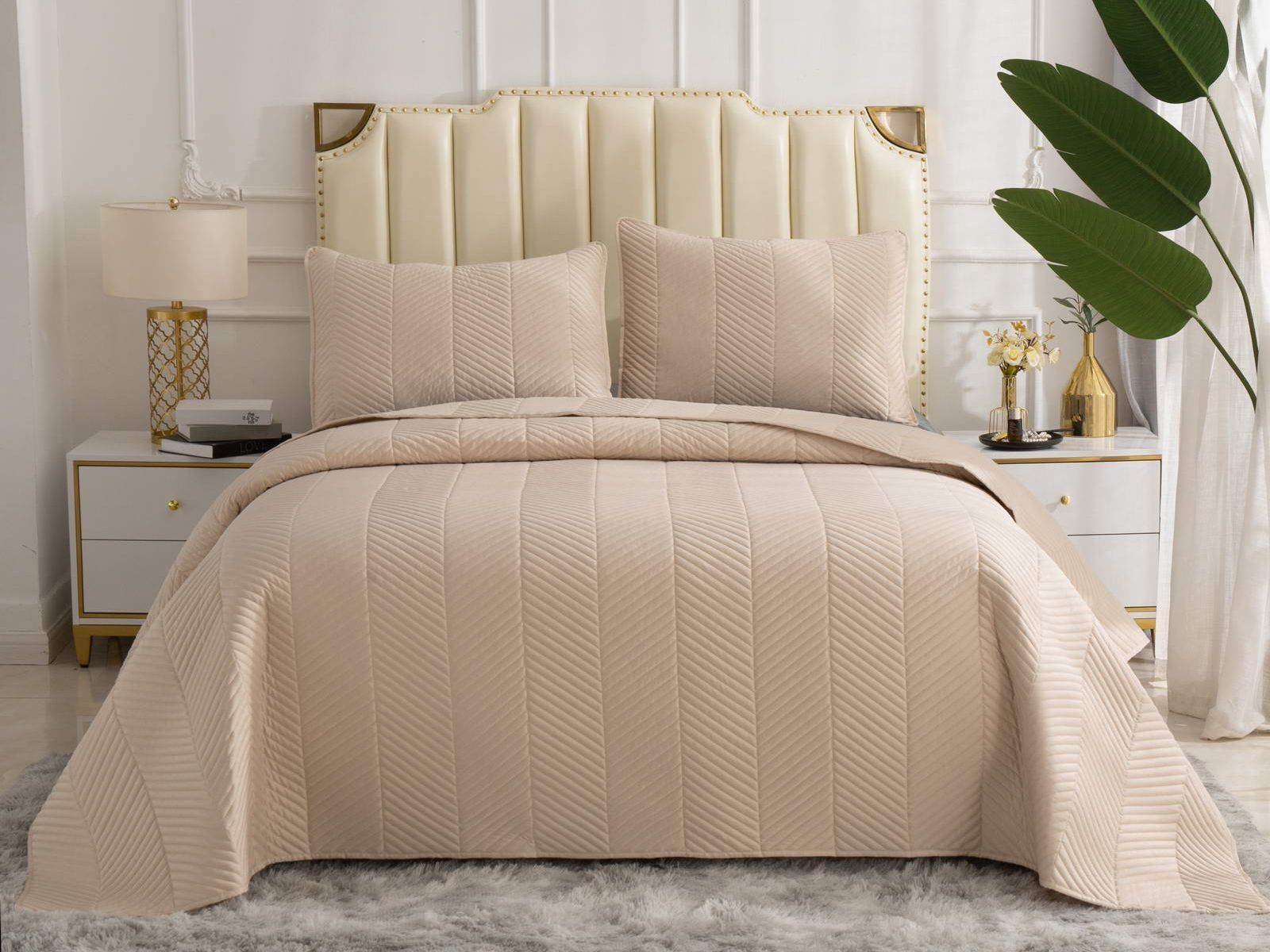 Стёганое дышащее покрывало Адонис на 70% состоит из хлопка и на 30% из вискозы. Ткань изделия гладкая и приятная на ощупь. Декоративный кант и ритмичный «елочный» рисунок, выступающий над поверхностью, придают покрывалу игривый утонченный вид.