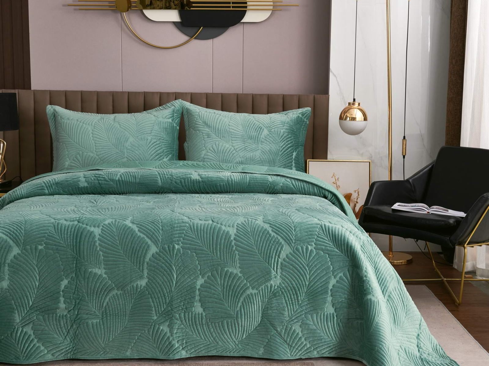 На создание велюрового покрывала Ноэль наших дизайнеров вдохновила ночь в середине лета, когда на раскаленную от жары землю спускается долгожданная прохлада. Роскошная вышивка в виде пальмовых листьев будет напоминать о тени, которую отбрасывают деревья.