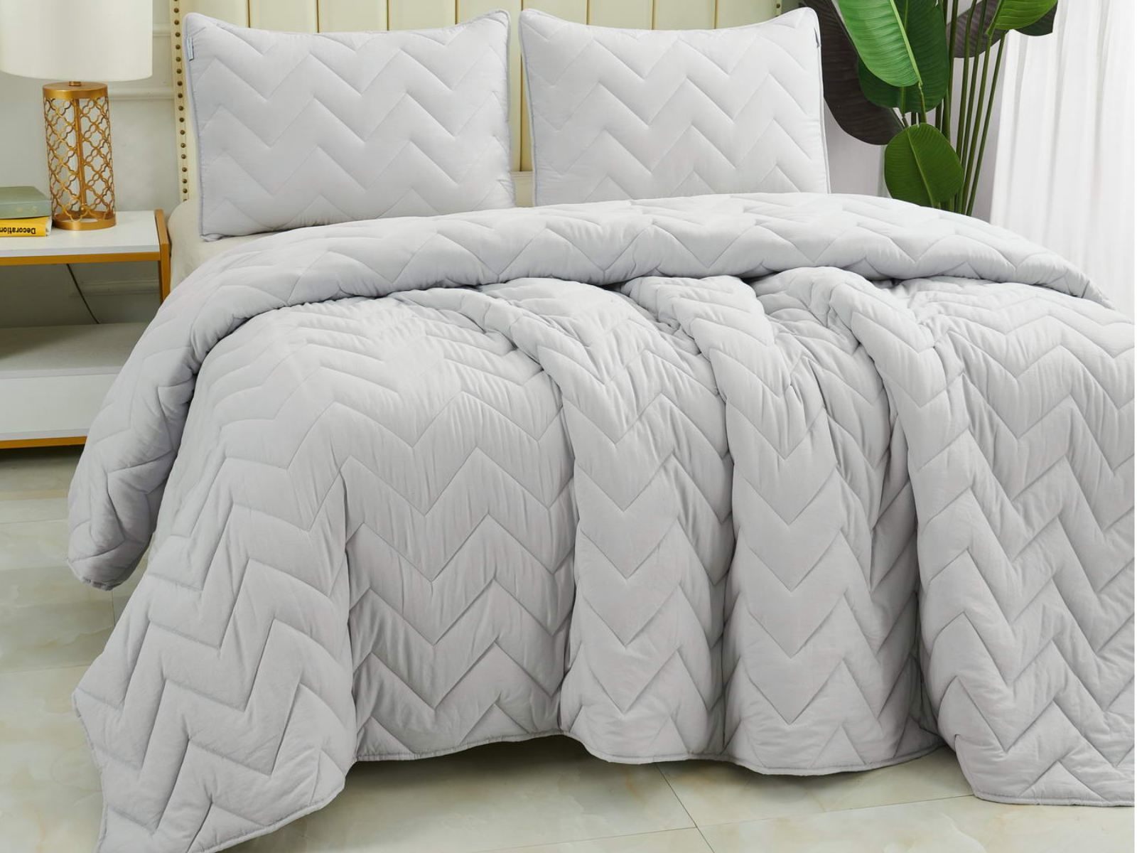В комплект входят покрывало и одна либо две наволочки (50х70 см) из аналогичного материала в зависимости от размера. Изделия гипоаллергенны, они подходят детям и людям с чувствительной кожей. Покрывала и наволочки не линяют, сохраняют форму и цвет при многочисленных стирках и не выгорают на солнце. Изделия можно стирать в щадящем режиме при температуре не выше 30 градусов.