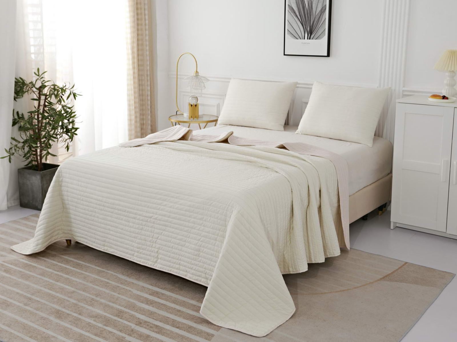 Двусторонние стеганные покрывала Самуэль выполнены из вискозы и хлопка, они легкие и прочные. В комплект входят покрывало и одна либо две наволочки (50х70 см) из аналогичного материала в зависимости от размера, вы можете использовать покрывало по назначению, либо в качестве постельного белья. В любом случае, вы будете в восторге от этого комплекта!
