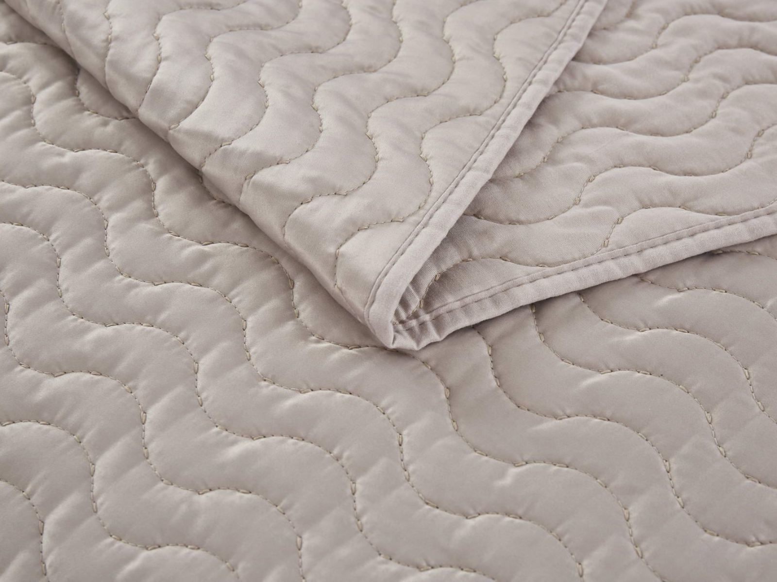 Коллекцию характеризуют сдержанные цвета с широкой палитрой сочетаний: серый, стоун, пудра, кофе, лаконичный волнистый узор, выступающий над поверхностью ткани, объёмная фактура, мягкость и гладкость атласного материала, деликатный кант по периметру изделия.