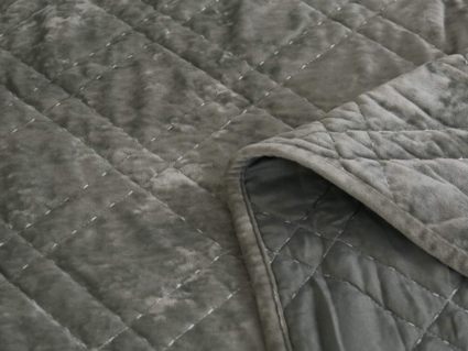 Покрывало Селена выполнено в девяти оттенках: пудра, антрацит, беж, изумруд, капучино, пепел роза, серебро, стоун, терракот. Они подойдут практически для любого интерьера, от классического, до модерна или романтического. Стеганое бархатное покрывало будет необыкновенно смотреться на вашей постели. В комплект входят покрывало и одна либо две наволочки (50х70 см) из аналогичного материала в зависимости от размера.