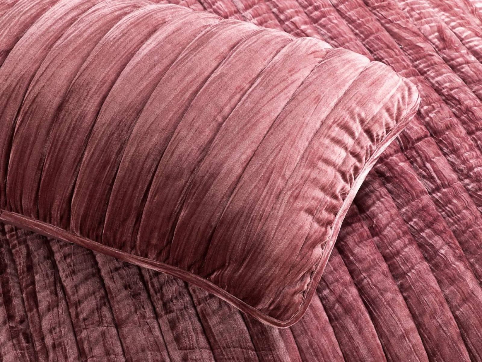 Лёгкое стеганное покрывало изготовлено из 100% вискозы. Стежка придает ткани объемную фактуру и задаёт вертикальный ритм. Декоративный кант в тон изделию добавляет изящества и стабилизирует ткань.