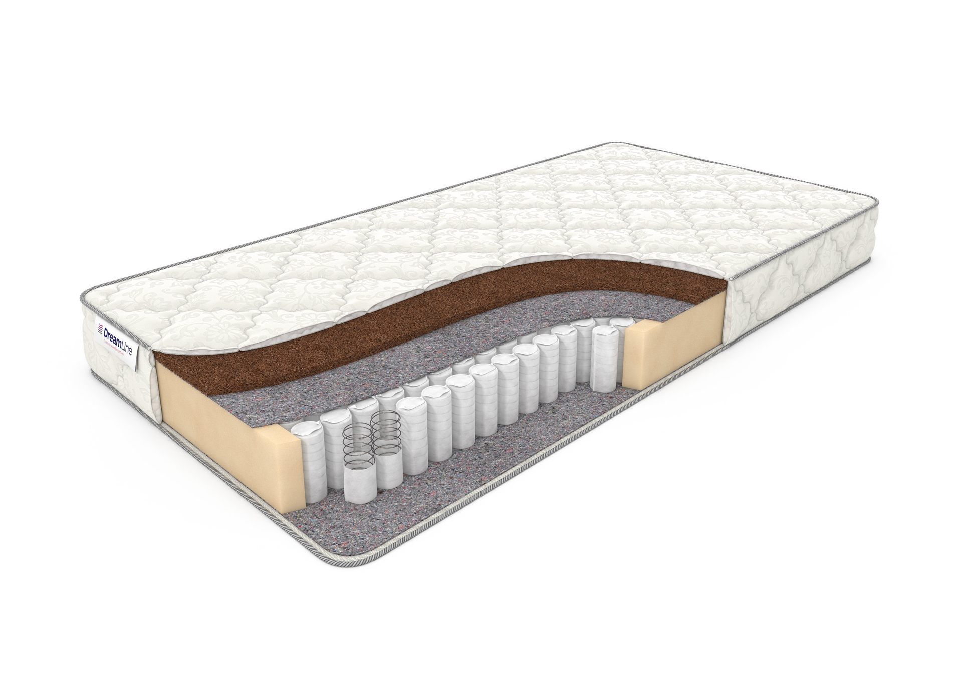 Наполнителем для одностороннего матраса Single Dream 3 TFK служит латексированная кокосовая койра - натуральный жесткий материал из волокон кокосового ореха, пропитанных латексом. Койра способствует равномерному распределению массы тела и оказывает отличную поддержку спине. Этот материал очень практичный и долговечный, не вызывает аллергии, хорошо пропускает воздух. В основе матрас лежит пружинный блок с количеством 256 штук на один квадратный метр. Каждая пружина работает независимо друг от друга, так что при давлении прогибаются только те места, на которые производится воздействие, что позволяет избежать колебаний. Матрас Single Dream 3 TFK оснащен чехлом из хлопкового жаккарда, простеганного на антиаллергенном холконе 250 гр./м2, в который можно бесплатно вшить смотровую молнию.