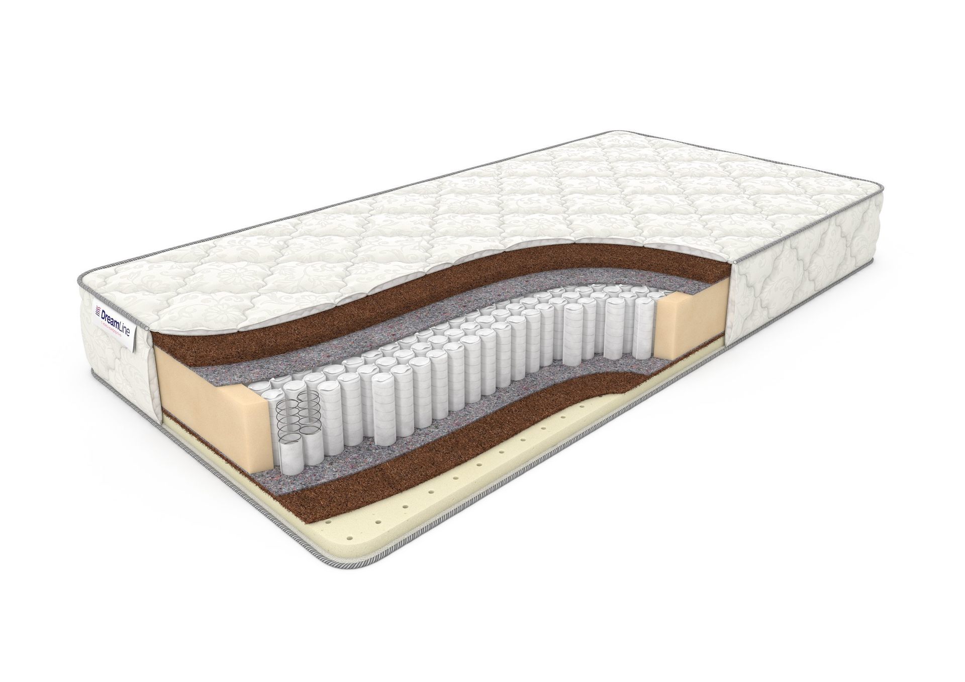 Матрас SleepDream Hard S1000, высота которого 22 см, выдерживает достаточно высокие нагрузки - до 140 кг на спальное место. Один из плюсов данной модели в том, что есть возможность выбрать наиболее удобную сторону для сна с учетом своих предпочтений, так как они имеют разную жесткость. Одна из сторон жесткая за счет толстого слоя кокосовой койры. В другой сочетаются койра и натуральный латекс - эта сторона имеет среднюю жесткость. Матрас изготовлен на основе прочного современного пружинного блока (500 пружин на квадратный метр) с отличными ортопедическими свойствами. Чехол модели SleepDream Hard S1000 сшит из трикотажа, простеган и наполнен объемным антиаллергенным холконом. В него по заказу можно бесплатно вшить смотровую молнию.